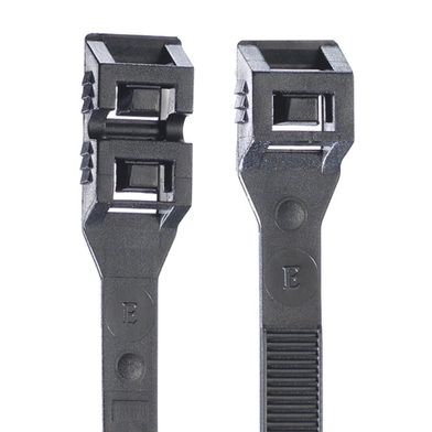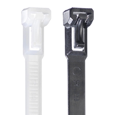 Cinchos dentados exteriores con cabezal de perfil bajo, fabricados con polímero resistente a los rayos UV. Instalación sin herramientas.